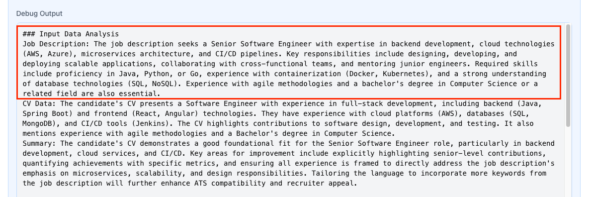 That tiny difference meant the model no longer recognized the boundaries between CV and job description. So when it couldn’t find a real job description, it did what LLMs naturally do - it made one up.