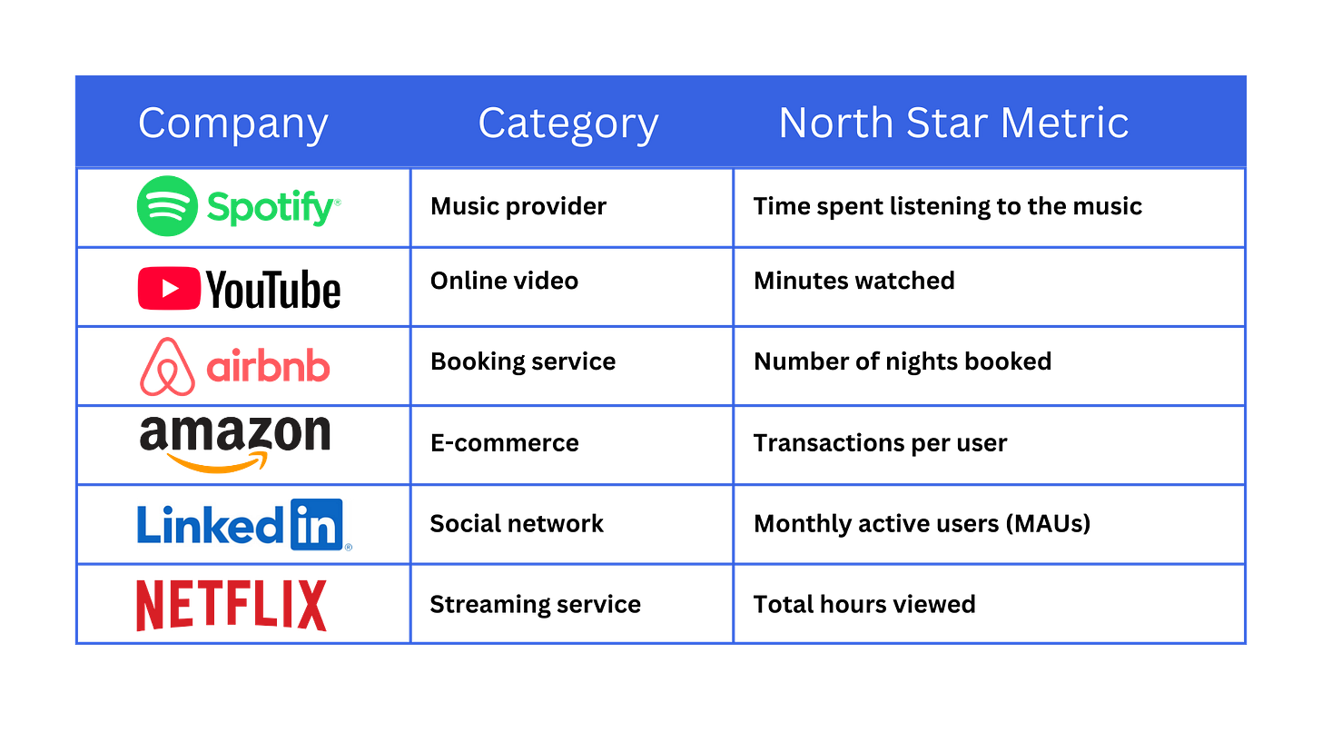 Here are several examples of NSMs from prominent companies. While no metric is perfect, these examples clearly represent the long-term value these companies aim to provide to their users: